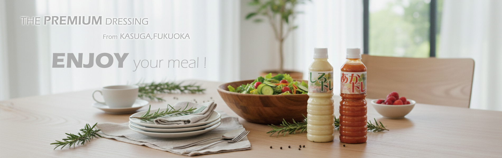 福岡・ドレッシング屋のドレッシングは、保存料や合成・化学系調味料、着色料や増粘剤等、味に不要なものを使用しておりません。その分、賞味期限がやや短くて申し訳ございません。また、手作りのために大量生産が行えません。ややお待ちいただく時間が必要なときがございます。申し訳ございません。ですが、笑顔はじける食卓をお約束いたします。